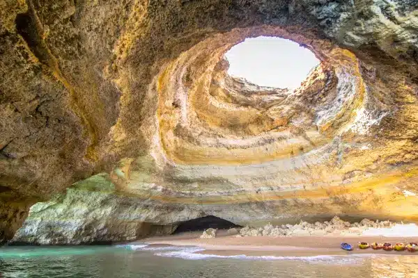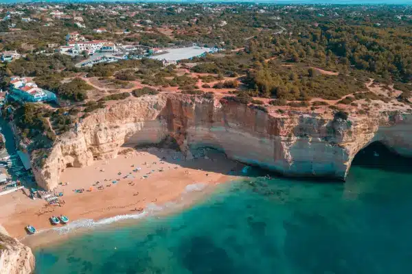 A poucos minutos da Praia da Marinha, a Praia de Benagil é conhecida mundialmente por abrigar uma das formações naturais mais icônicas de Portugal: a Gruta de Benagil. Este magnífico espaço, acessível apenas por barco, caiaque ou stand-up paddle, é iluminado pela luz do sol que penetra por uma abertura no teto da gruta, criando um espetáculo visual único. Além disso, a praia em si é encantadora, com um ambiente tranquilo perfeito para relaxar ou explorar os arredores.